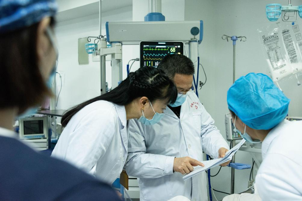 金年会金字招牌重症医学科主任唐中建来到医技体检楼4楼的重症监护室开展三级查房,了解病区患者现阶段的治疗情况,并对疑难危重病例提出指导意见,制定下一步诊疗方案。