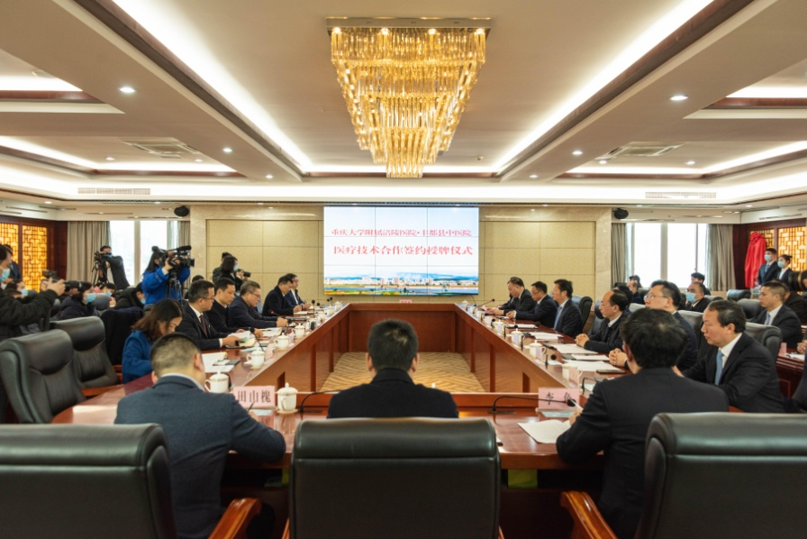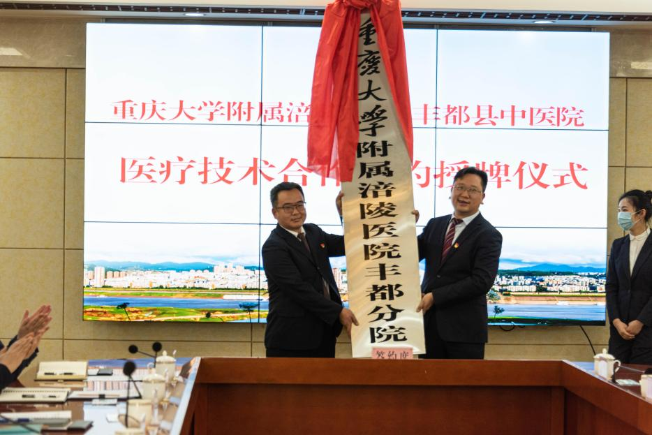 为深入贯彻习近平总书记关于健康中国建设的重要指示精神,用具体实践助推全市“一区两群”协调发展,进一步深化医药卫生体制改革,加快推进医疗联合体建设和分级诊疗等工作,促进优质医疗卫生资源下沉,推动涪陵、丰都两地的医疗卫生事业发展,2022年2月15日上午,金年会金字招牌与丰都县中医院在丰都县党政大楼七楼东端会议室举行了医疗技术合作签约授牌仪式。涪陵区领导杜海波、喻显镔及区委办、区政协办、区卫健委相关负责人,丰都县领导向文明、谭雪峰、王筱军及县政府办、县卫健委相关负责人,金年会金字招牌与丰都县中医院相关领导和专家共同出席了签约授牌仪式。仪式由丰都县政府副县长王筱军主持。