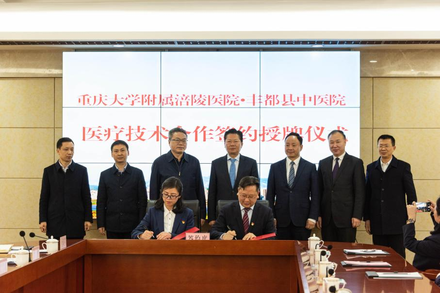 与丰都县中医院院长付莉萍在涪陵、丰都两地领导见证下现场签订合作协议