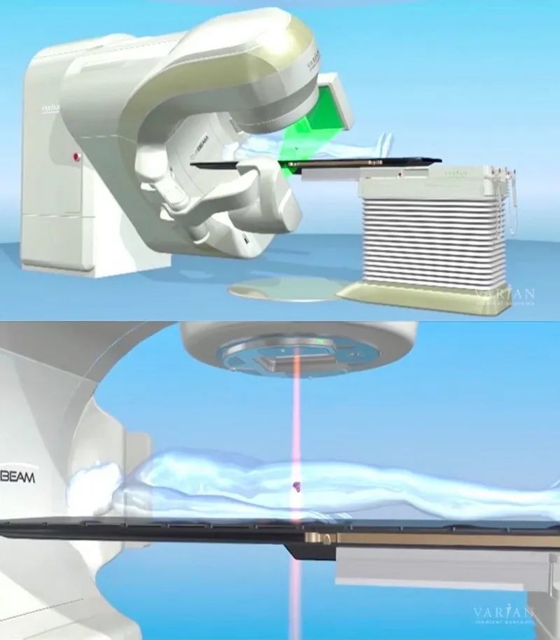瓦里安VitalBeam:是集合全新技术设计的新一代数字化高能直线加速器,每年约为全球150万肿瘤患者提供精准高效的放射治疗服务。其运用了大量创新技术,配备了四维治疗床、呼吸门控、4D-CBCT(锥形束CT)等高端图像引导辅助系统,能在复杂的肿瘤治疗过程中同步处理成像、患者摆位和移动管理等问题。