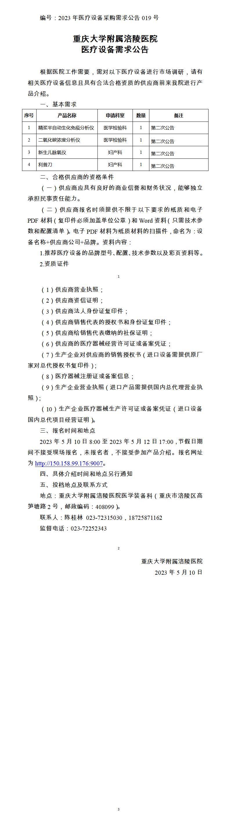 金年会金字招牌2023年医疗设备采购需求公告第019号